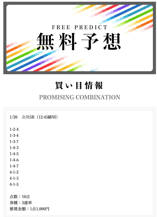 • 2025/01/16的中無料予想で28,200円獲得