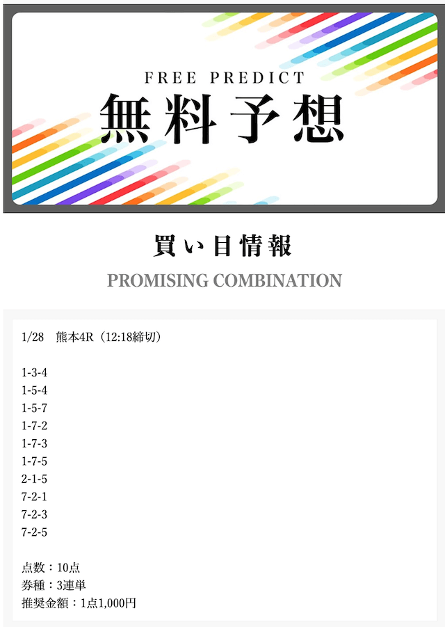 • 2026/01/28的中無料予想で27,000円獲得