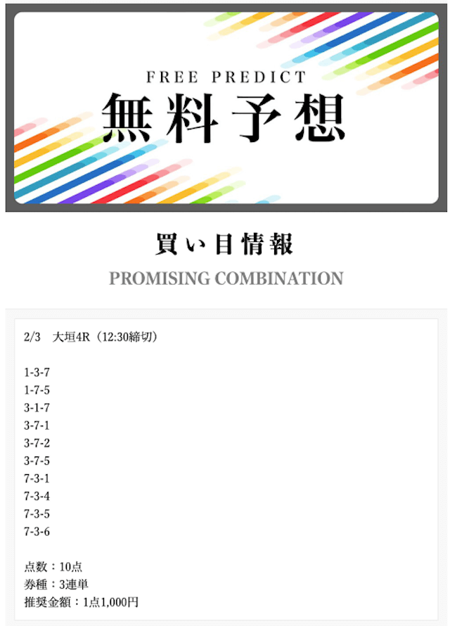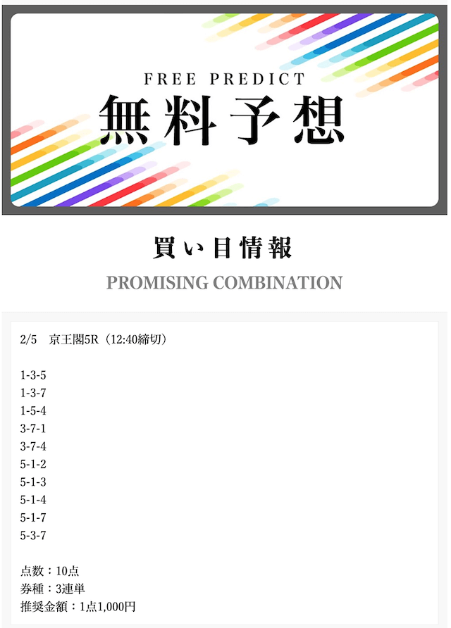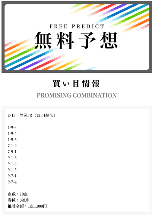 • 2025/03/21的中無料予想で43,700円獲得