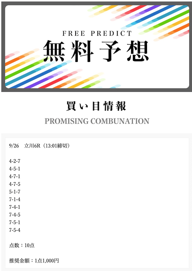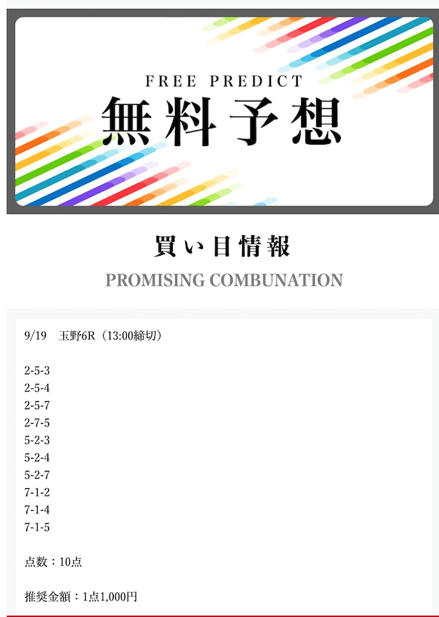 - 2025/09/12的中無料予想で77,700円獲得