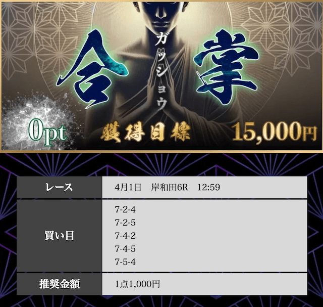 - 2026/04/01的中無料予想で16,900円獲得