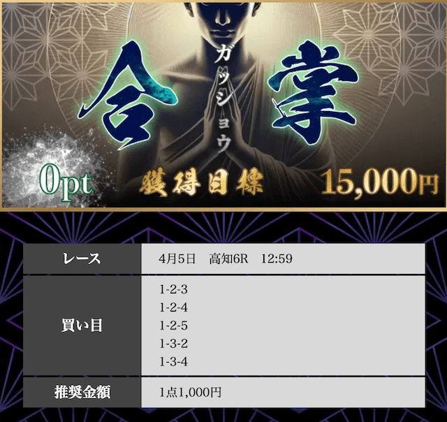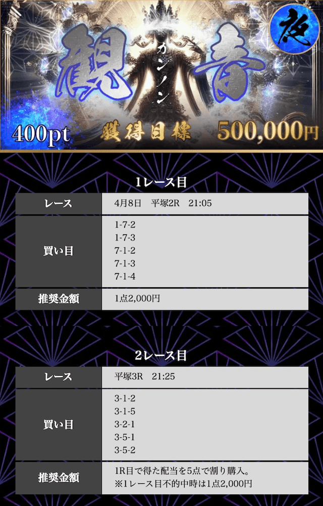 - 2026/04/06的中無料予想で12,500円獲得