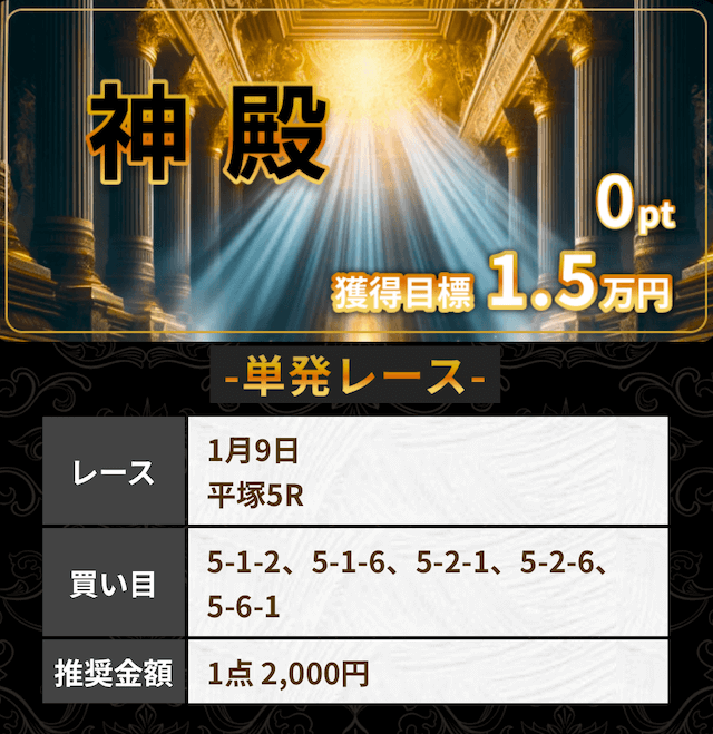 無料予想がデイのみの公開となるため、参加が難しいという方は、安価な有料プランに参加するのも1つの手です。