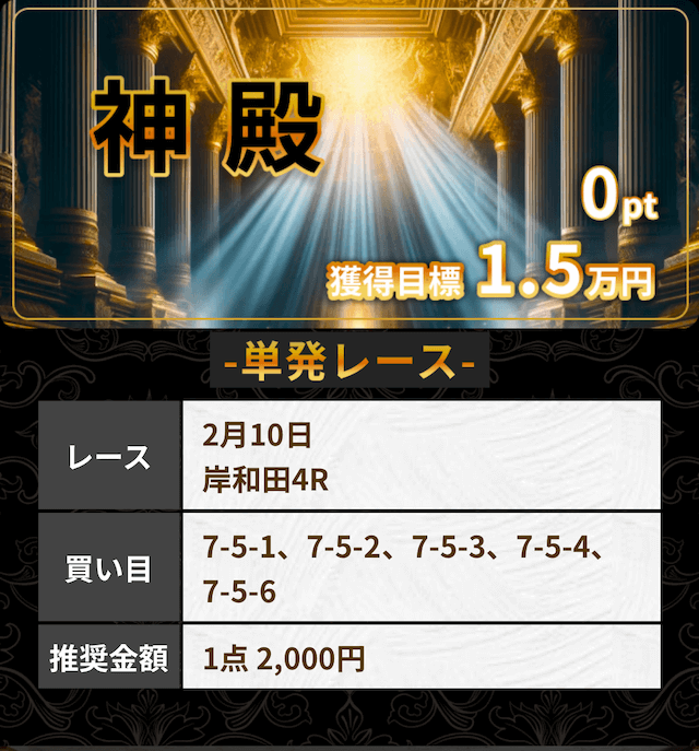 - 2026/02/10的中無料予想で7,200円獲得