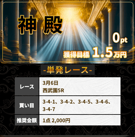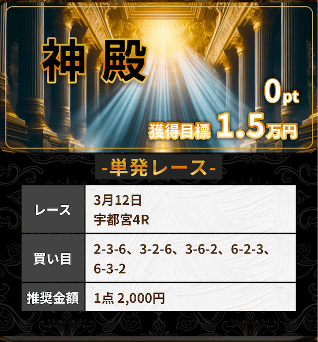 - 2026/03/12的中無料予想で21,600円獲得