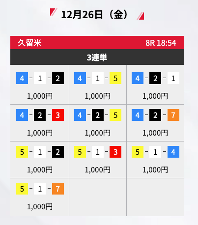 - 2025/12/15的中無料予想で26,500円獲得