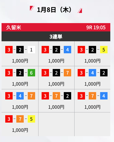 - 2026/01/08的中無料予想で17,300円獲得