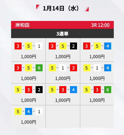 - 2026/01/14的中無料予想で14,400円獲得