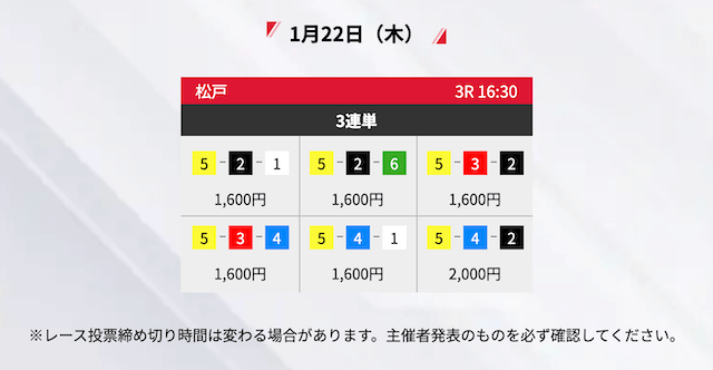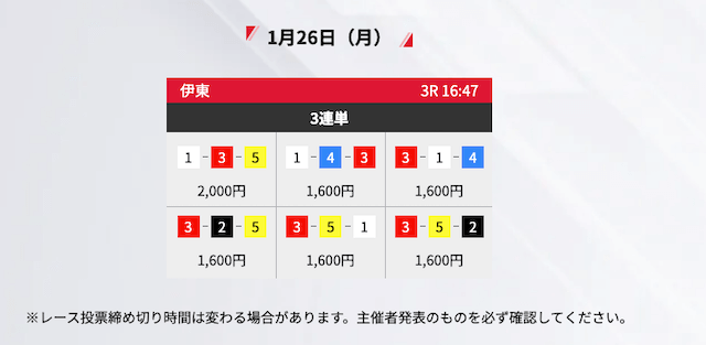 - 2026/01/15的中無料予想で26,500円獲得