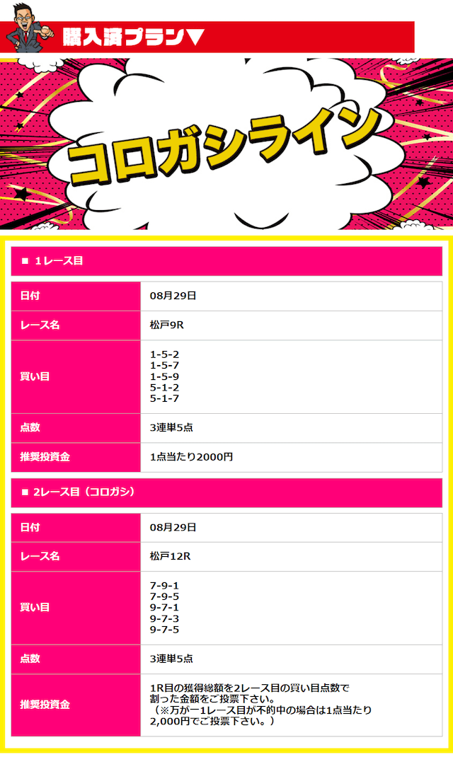 - 2025/08/24的中無料予想で7,100円獲得