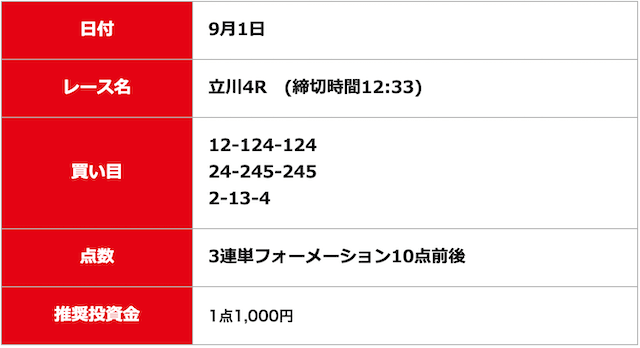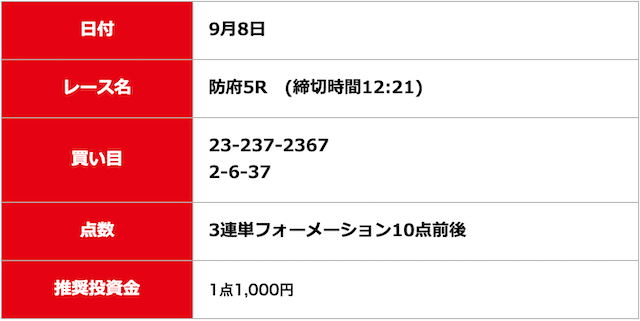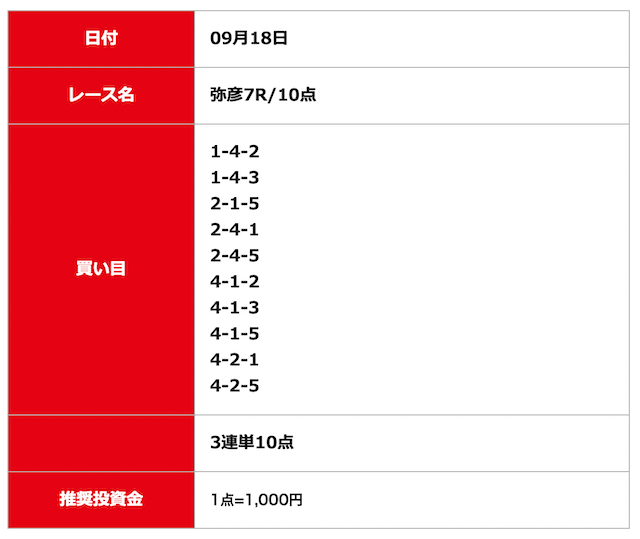 - 2025/09/11的中無料予想で5,500円獲得
