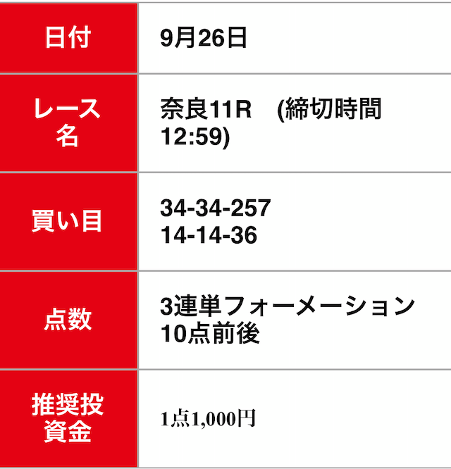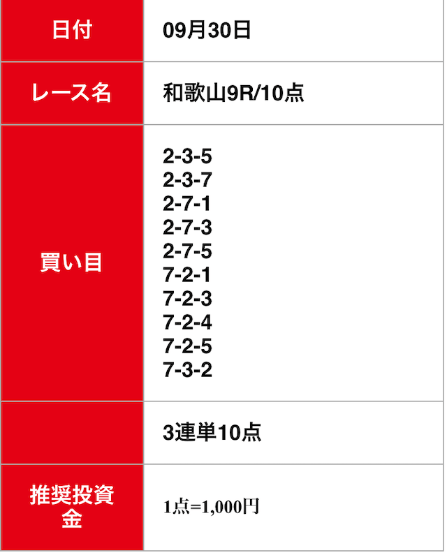 - 2025/09/30的中無料予想で5,800円獲得