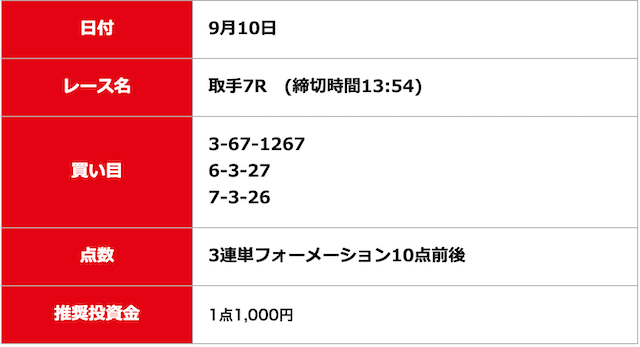 - 2025/09/06的中無料予想で7,500円獲得