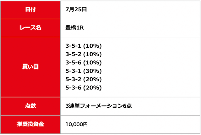 - 2025/08/03的中無料予想で5,300円獲得