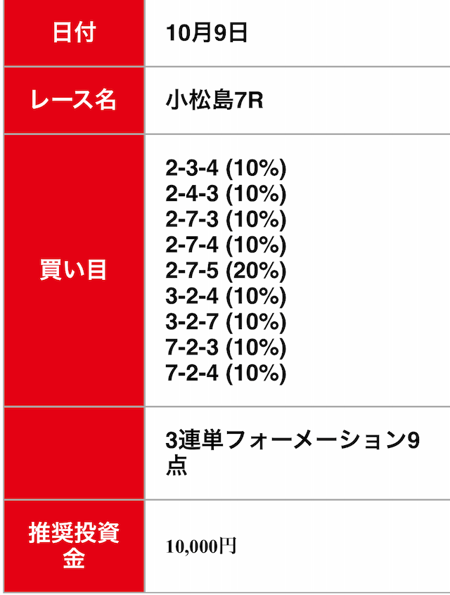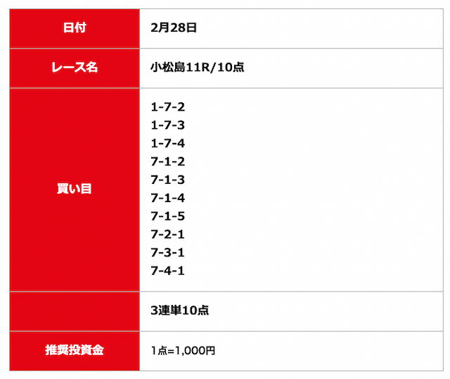 - 無料予想に10日連続で参加した結果8勝を収めることに成功