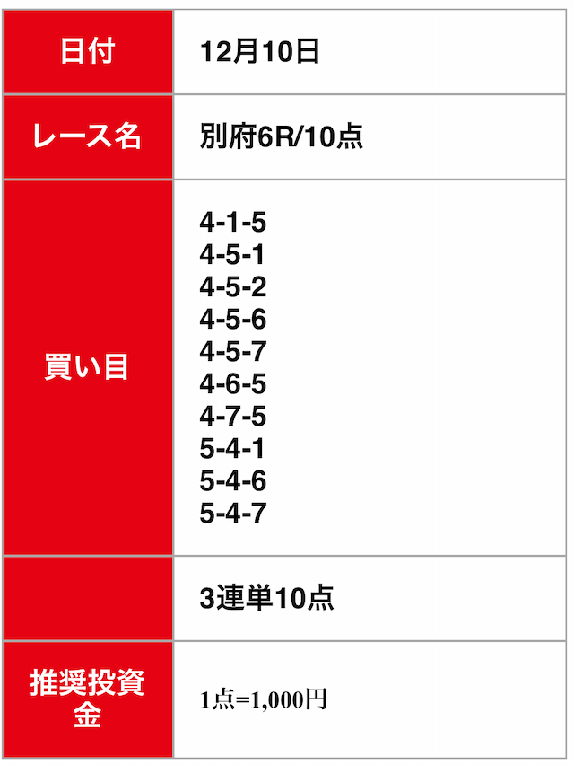 - 2024/12/10的中無料予想で5,100円獲得
