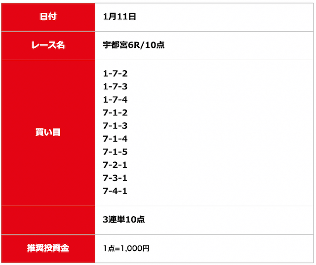 - 2025/01/07的中無料予想で11,300円獲得