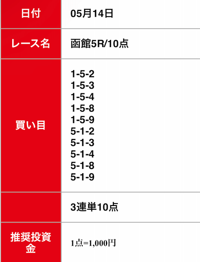 - 2025/05/08的中無料予想で5,500円獲得
