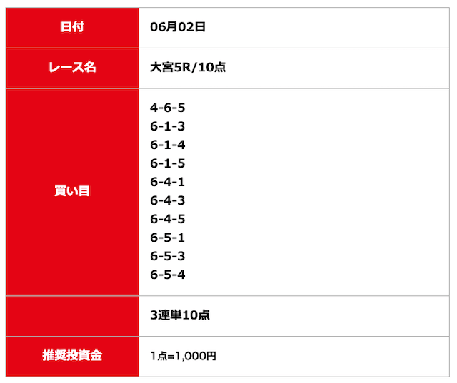 - 2025/06/02的中無料予想で6,800円獲得