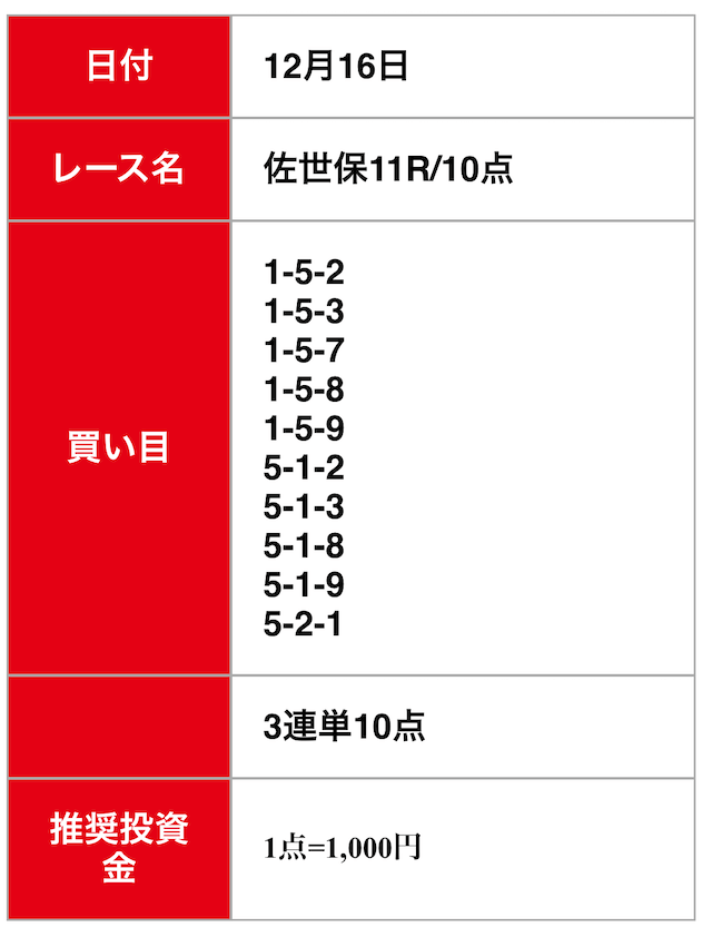 - 2024/12/03的中無料予想で16,500円獲得