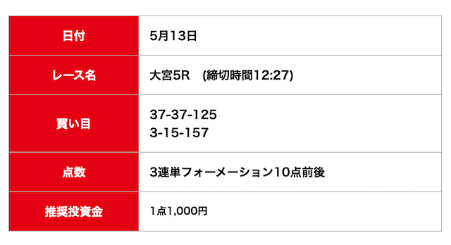 - 2025/05/13的中無料予想で13,600円獲得