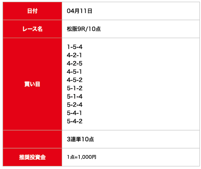 - 2025/04/11的中無料予想で12,500円獲得