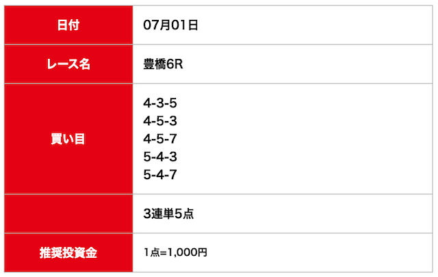 - 2025/07/04的中無料予想で5,600円獲得