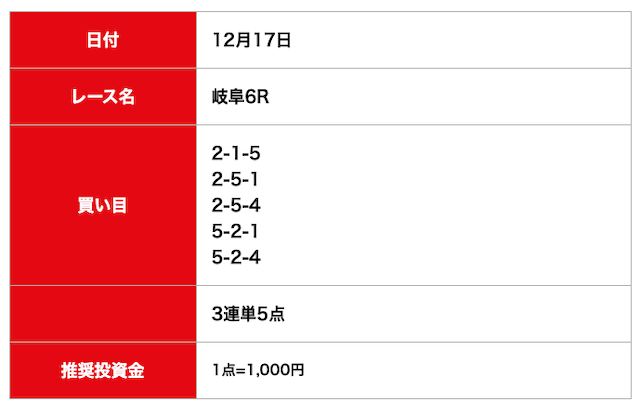 - 2024/12/17的中無料予想で8,100円獲得