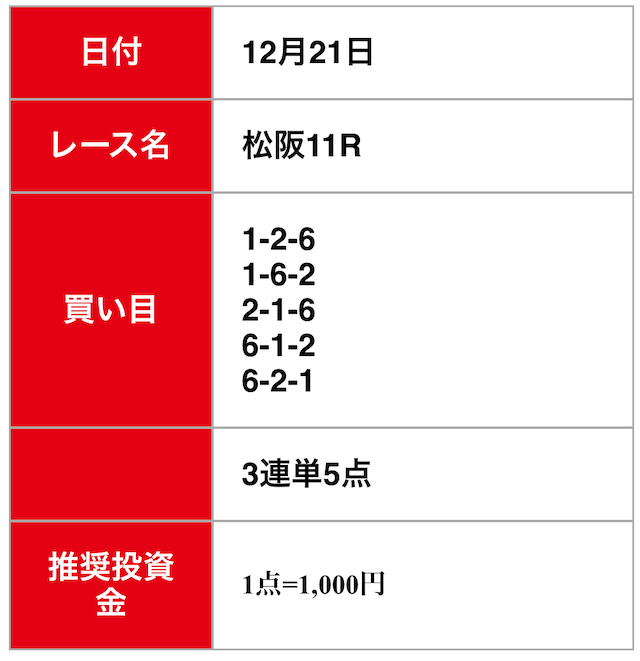 - 2024/12/20的中無料予想で5,800円獲得