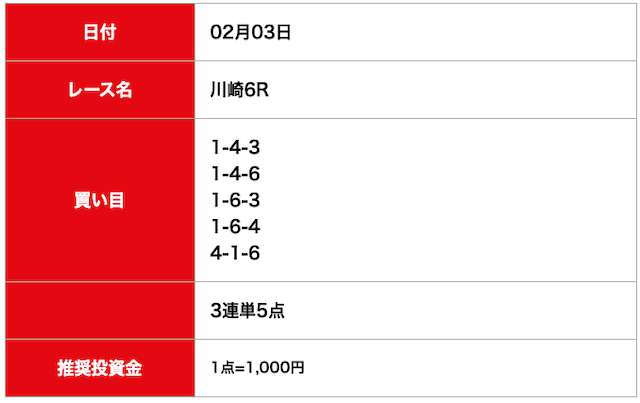 - 2025/02/03的中無料予想で6,600円獲得