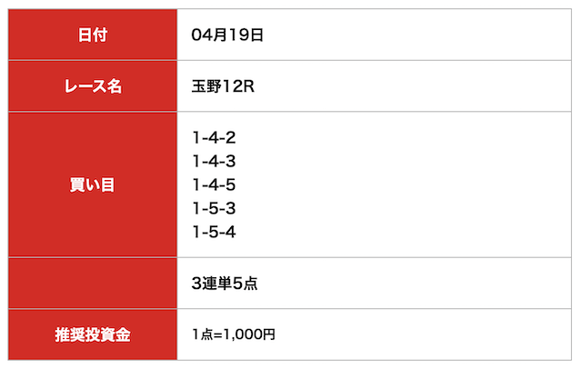 - 2025/04/19的中無料予想で5,700円獲得