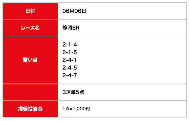 - 2025/06/06的中無料予想で5,500円獲得
