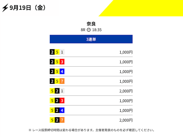 - 2025/09/19的中無料予想で12,200円獲得