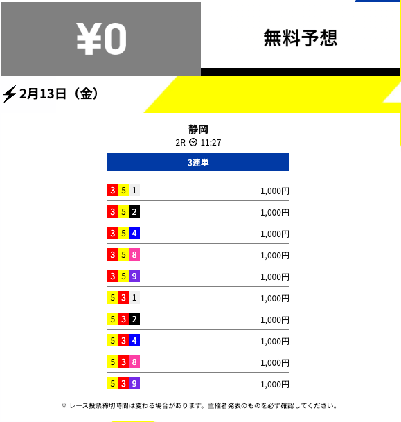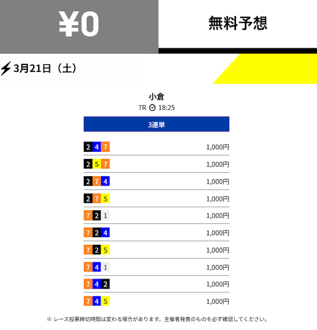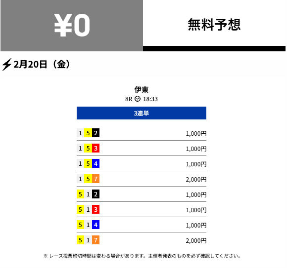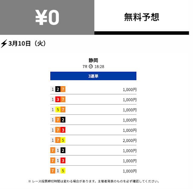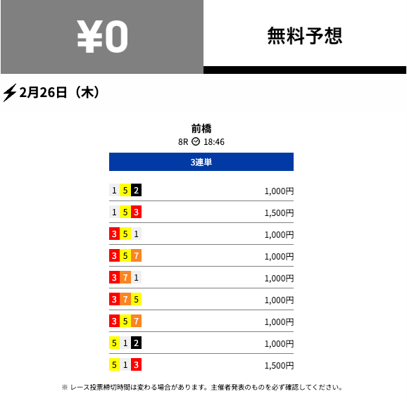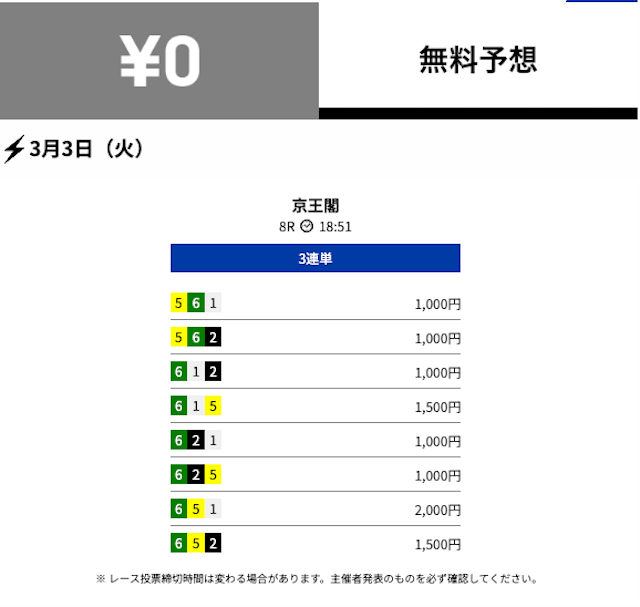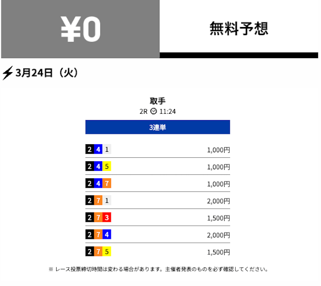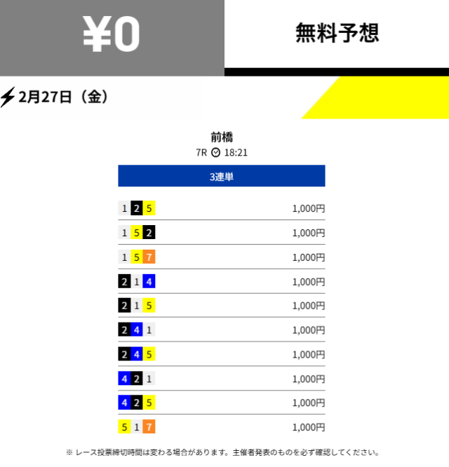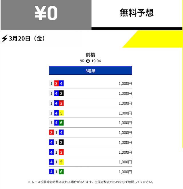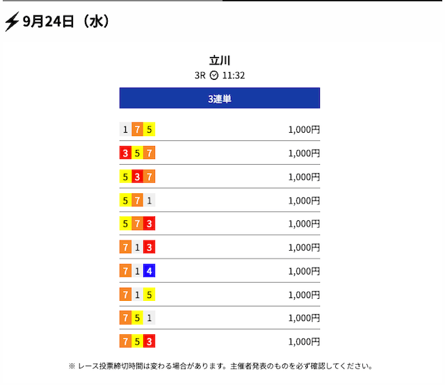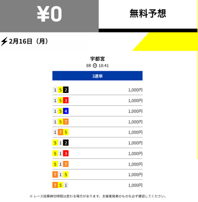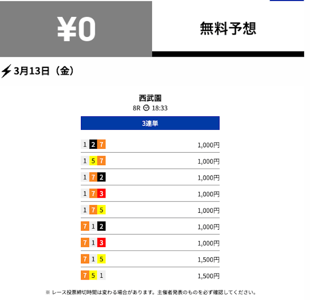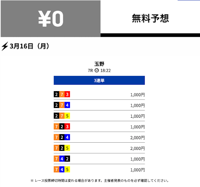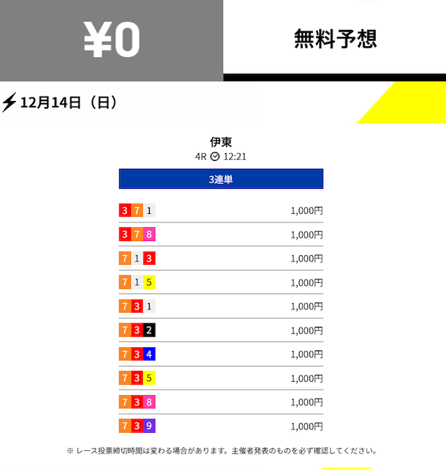 ただ、投資配分をすることが多く、購入に手間がかかるため、投票締め切り時間に余裕を持って、予想を見ることをおすすめします。