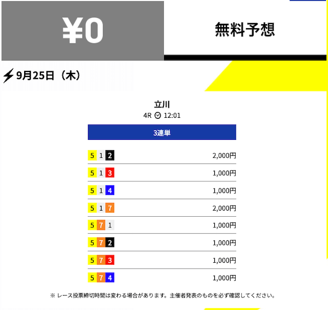 - 2025/09/25的中無料予想で39,700円獲得