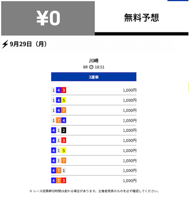 - 2025/09/29的中無料予想で22,100円獲得