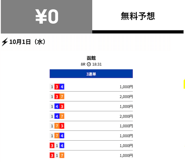 - 2025/10/08的中無料予想で11,200円獲得