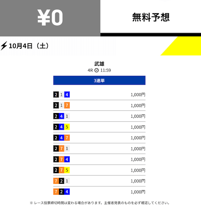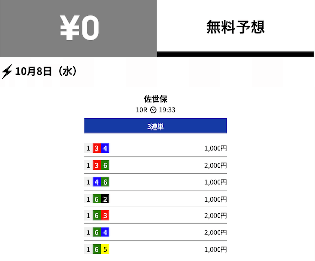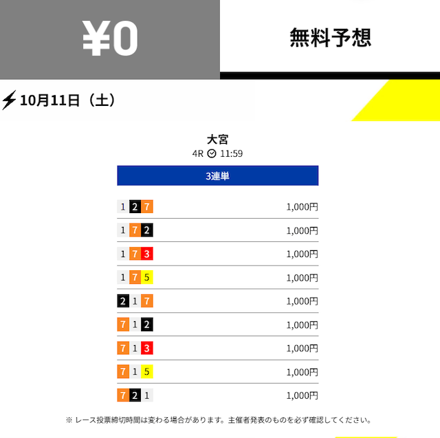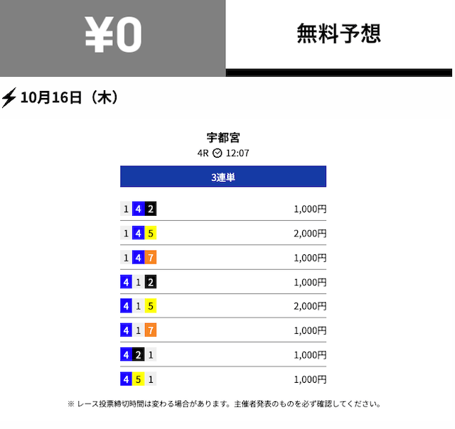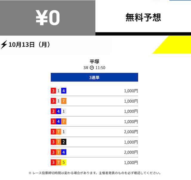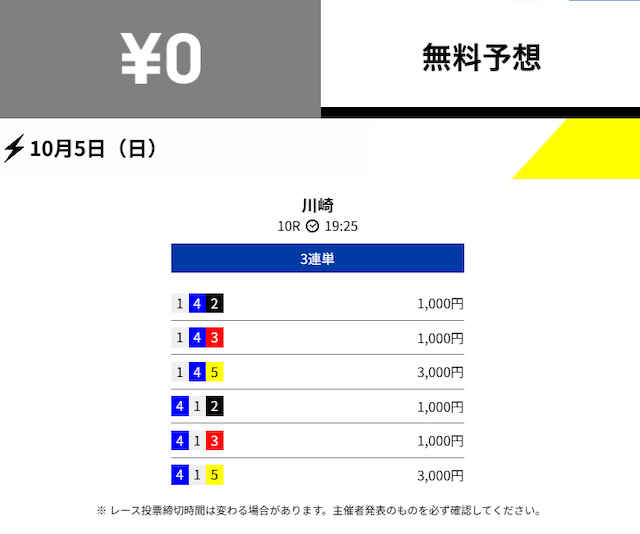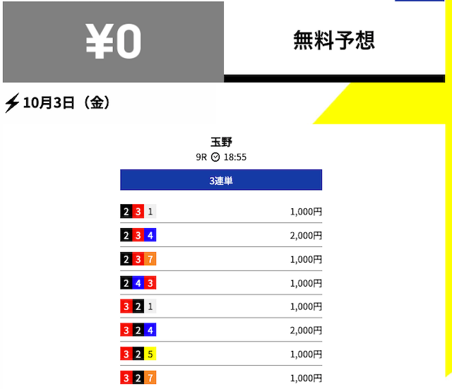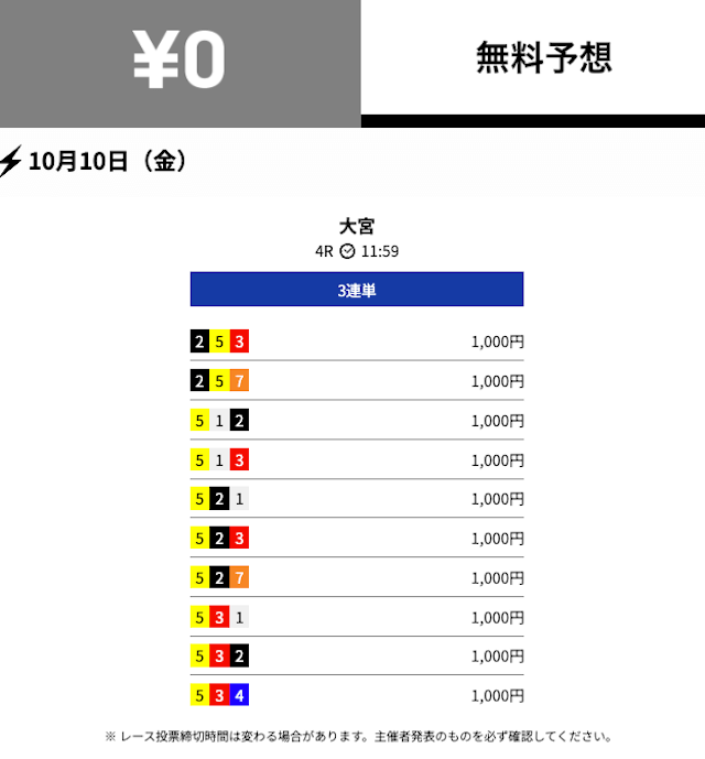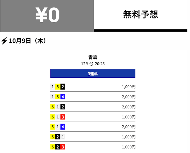- 2025/10/03的中無料予想で10,800円獲得