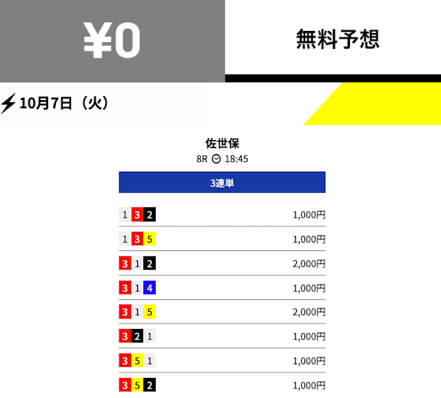 - 2025/10/07的中無料予想で18,600円獲得