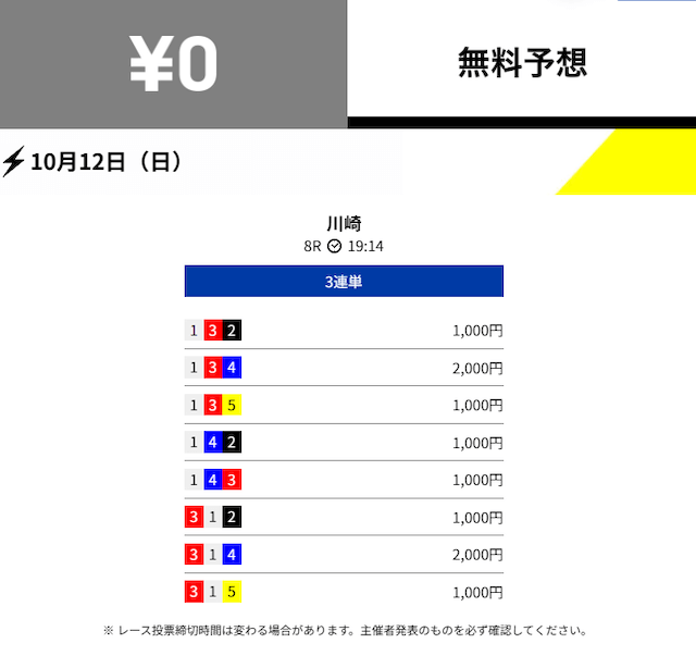 - 2025/10/12的中無料予想で16,800円獲得