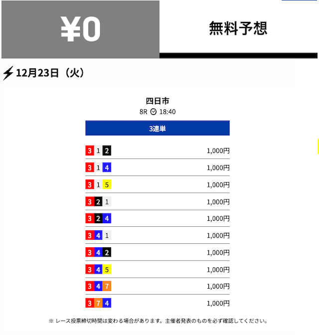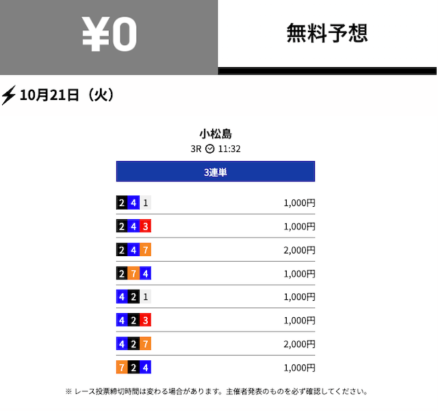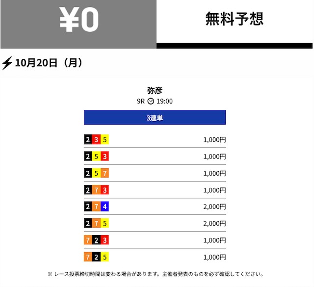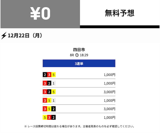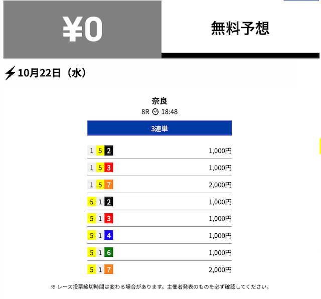 - 2025/10/22的中無料予想で22,700円獲得