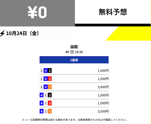 - 2025/10/24的中無料予想で14,900円獲得