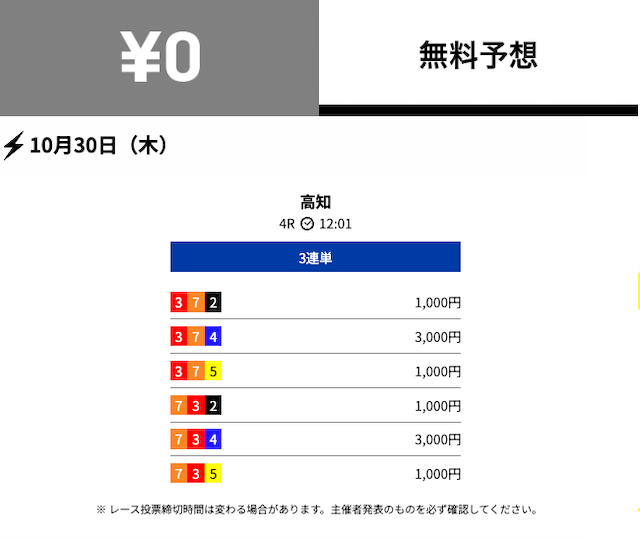 - 2025/10/30的中無料予想で12,100円獲得