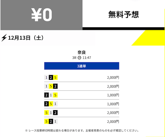 - 2025/12/03的中無料予想で13,400円獲得