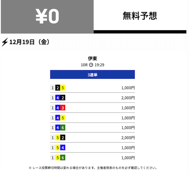 - 2025/12/06的中無料予想で16,600円獲得