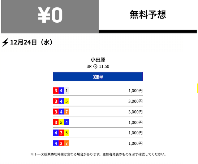 - 2025/12/24的中無料予想で25,300円獲得
