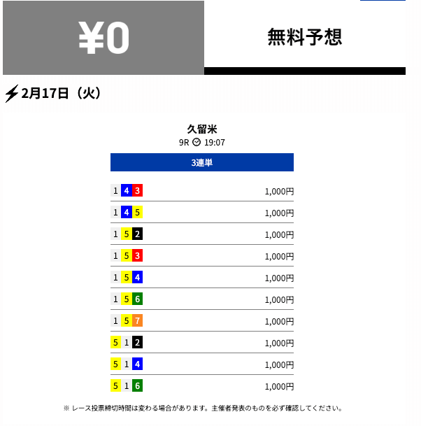 - 5.0投稿者:匿名無料予想で5連勝して6万円のプラス!その勝ち分で有料予想を使ってみたけど、30万円稼げた!こんな短期間でここまで稼げるとは、、