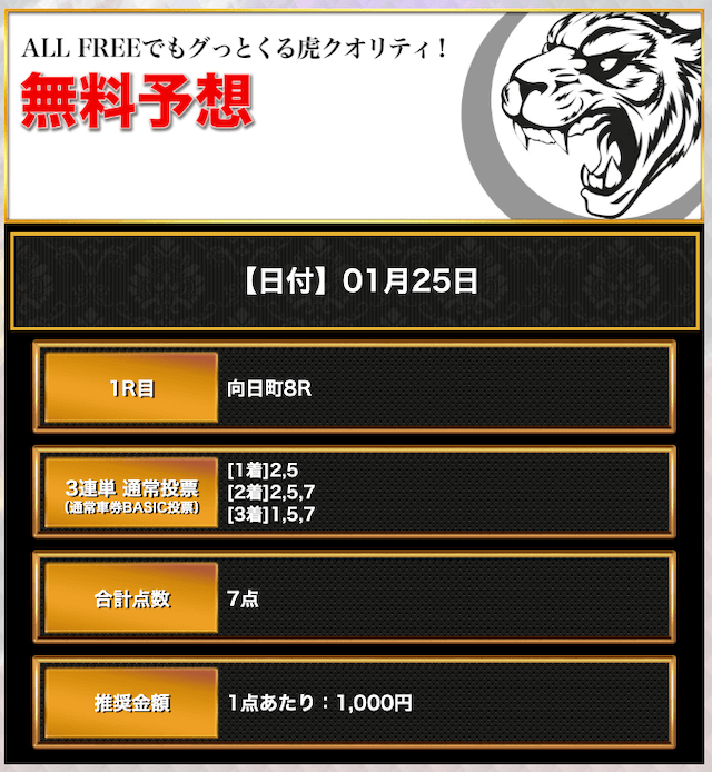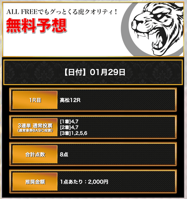 - 公開された無料予想を指示通りに購入