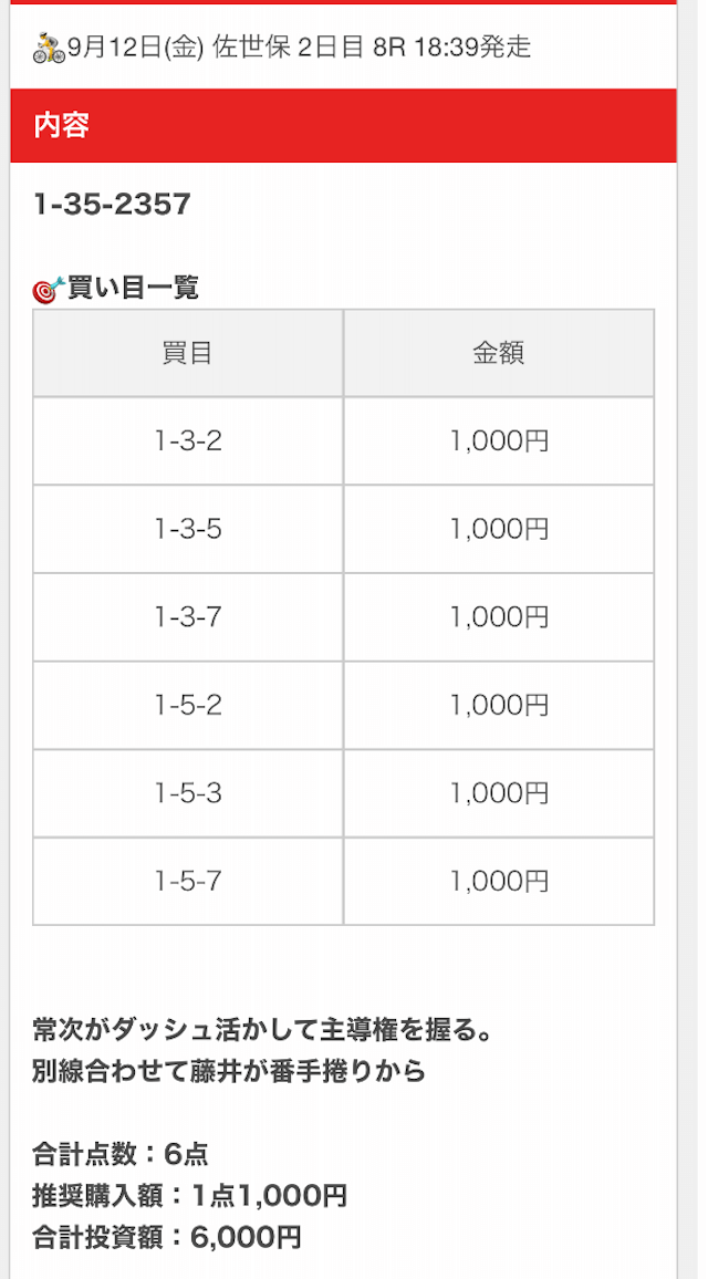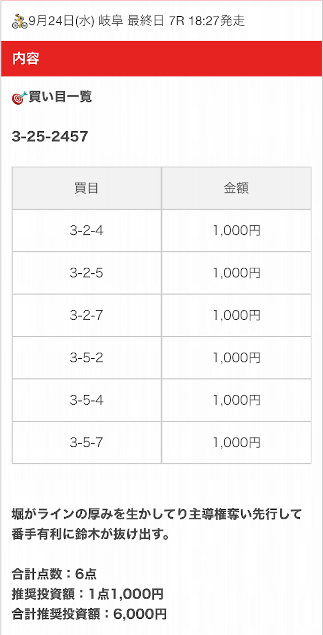 - 2025/09/24的中無料予想で6,200円獲得