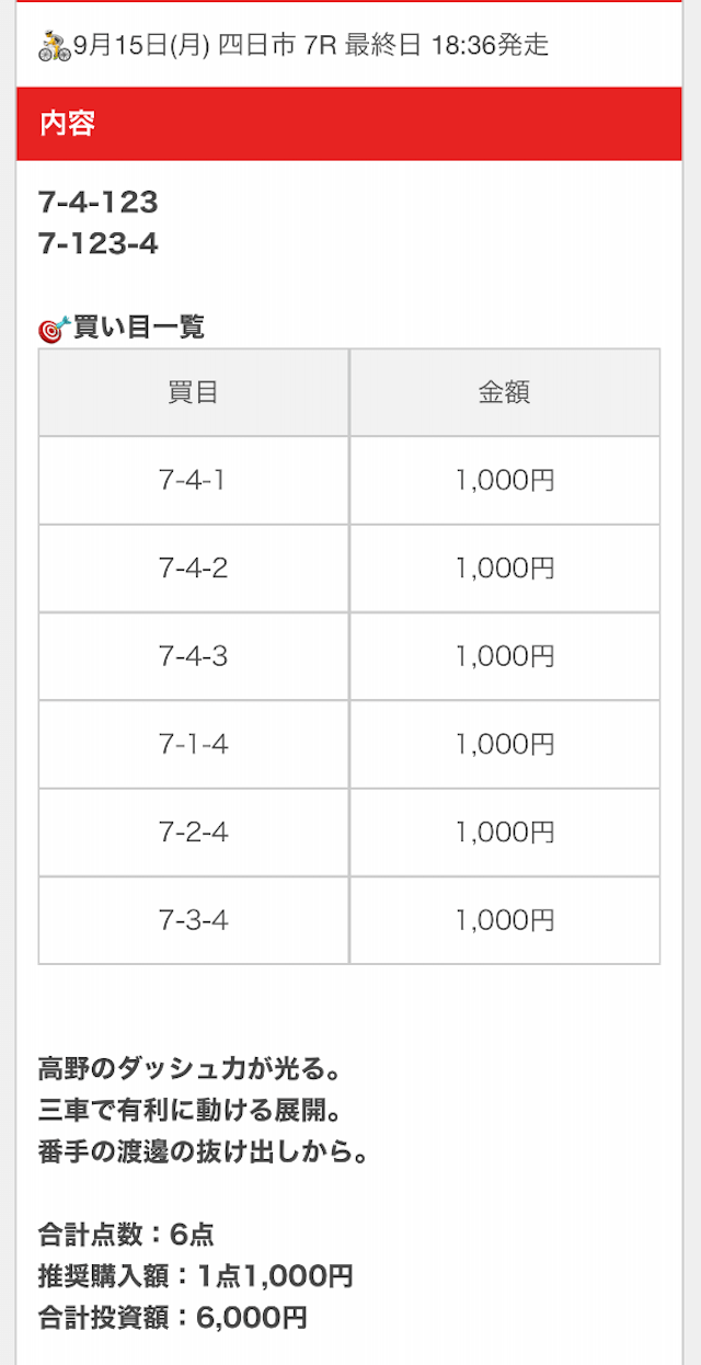 - 2025/09/11的中無料予想で7,700円獲得